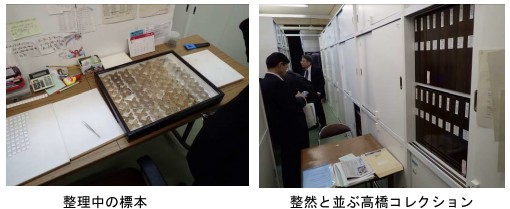 企画展を一回りした後は、ミュージアムのバックヤードに保管されている高橋真弓コレクション(ドイツ箱約 300 箱に管理番号が付けられ、整然と並んでいる)を閲覧しました。整理中の標本やどのように整理収蔵されているかの説明をミュージアムの方が参加者に詳しく説明されていました。